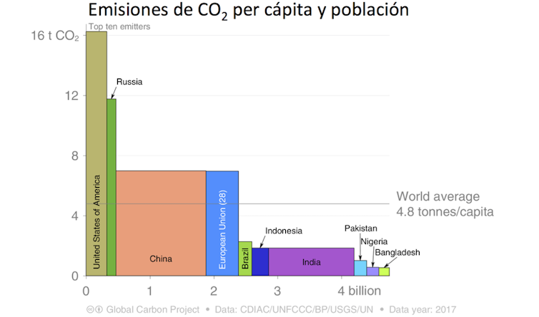 Es cierto que el cambio climático puede aumentar la desigualdad y la injusticia social. Un ciudadano de la India, por ejemplo, emite 8 veces menos CO₂ que uno estadounidense. El sector industrial indio está ahora empezando a despegar. Dada la elevada densidad de población, si logran una industrialización basada en combustibles fósiles como la de los Estados Unidos, nos quedaríamos sin ninguna oportunidad de limitar el calentamiento global a 2℃.